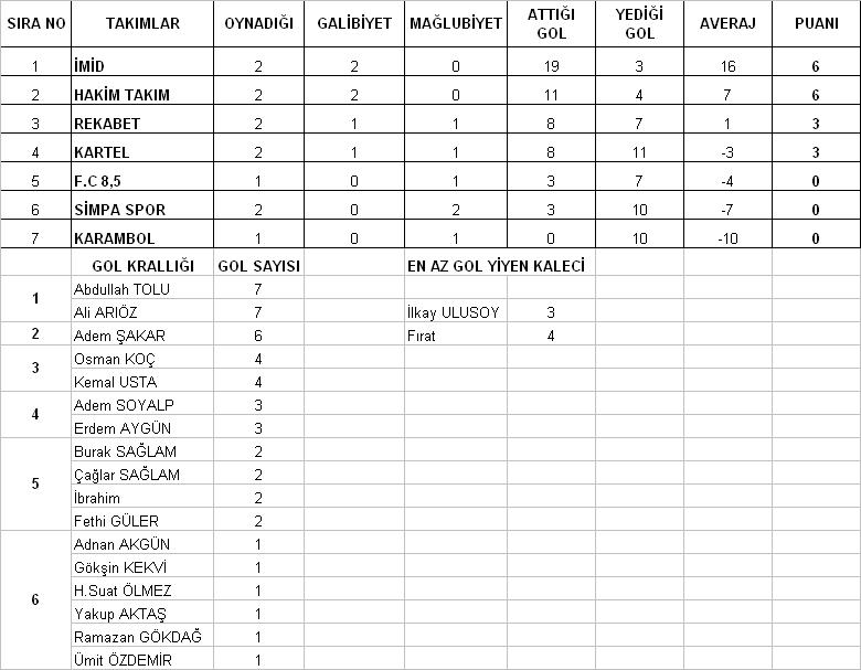 21 Nisan 2010 tarihinde başlayan "Rekabet Kurumu Birimler Arası Futbol Turnuvası" ikinci hafta sonuçları belli oldu (27.12.2012)