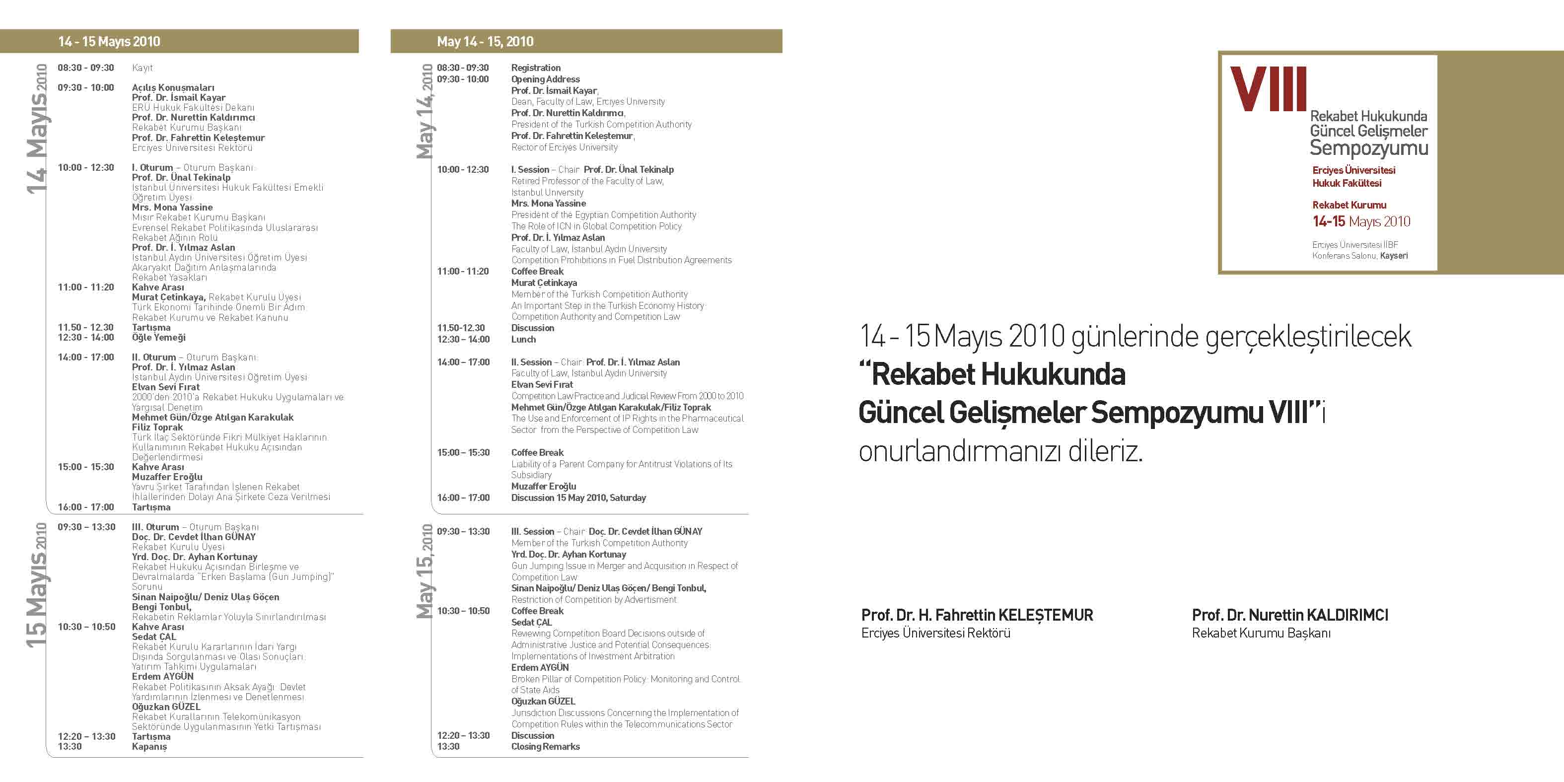 Rekabet Kurumu ve Erciyes Üniversitesi Hukuk Fakültesi işbirliğinde 2003 yılından bu yana düzenlenen "Rekabet Hukukunda Güncel Gelişmeler Sempozyumu" nun VIII incisi 14-15 Mayıs 2010 tarihlerinde gerçekleştirilmiştir.