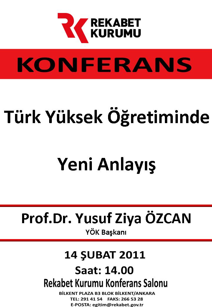 Kurumumuz tarafından düzenlenmekte olan Perşembe Konferansları çerçevesinde Yükseköğretim Kurulu Başkanı Prof. Dr. Yusuf Ziya ÖZCAN' 14 Şubat 2011 tarihinde düzenlenen “Türk Yüksek Öğretiminde Yeni Anlayış” konulu konferansa konuşmacı olarak katılmıştır. |